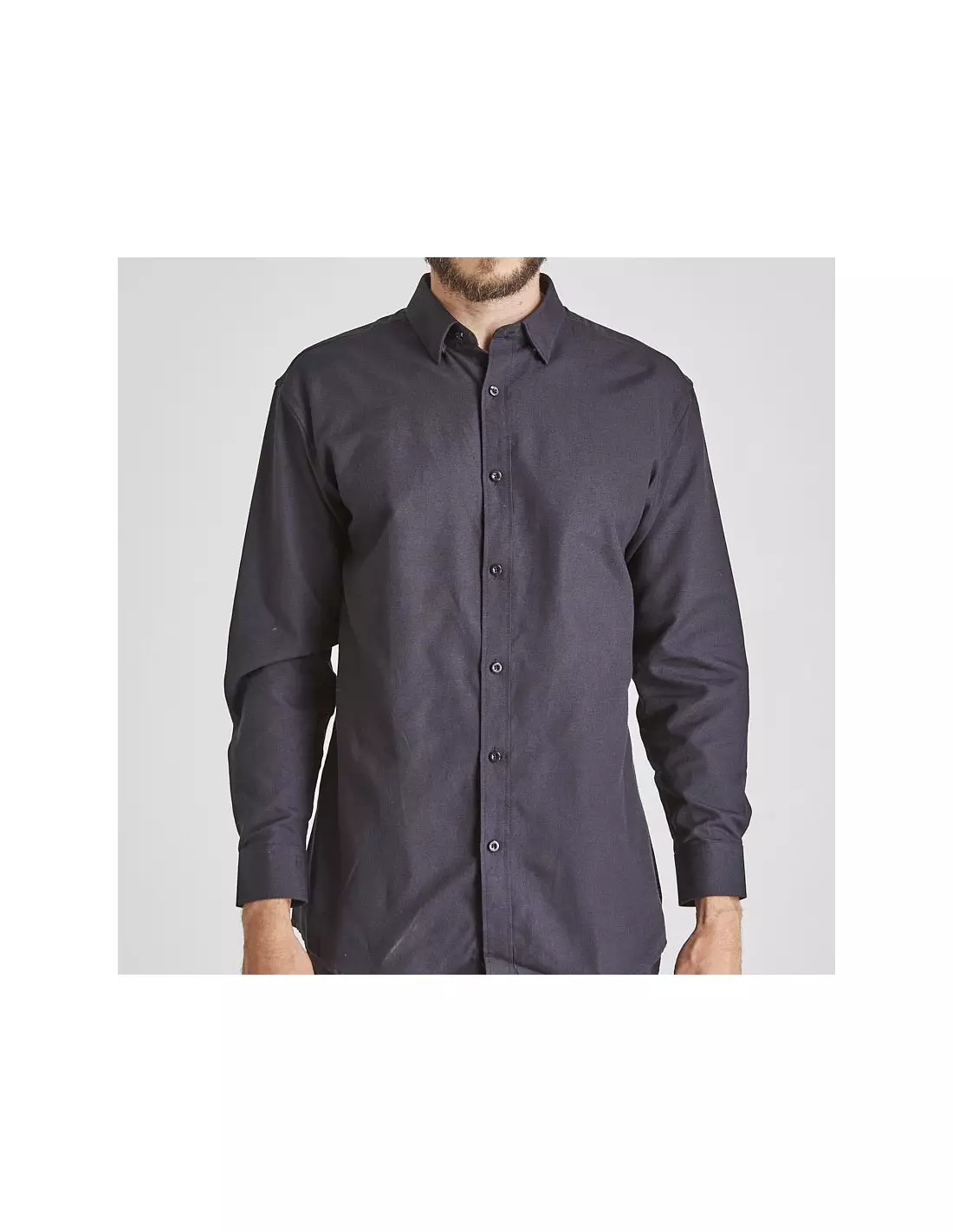 CAMISA OXFORD NEGRA GUARDIA M/LARGA 55% ALG- 45% POLY.